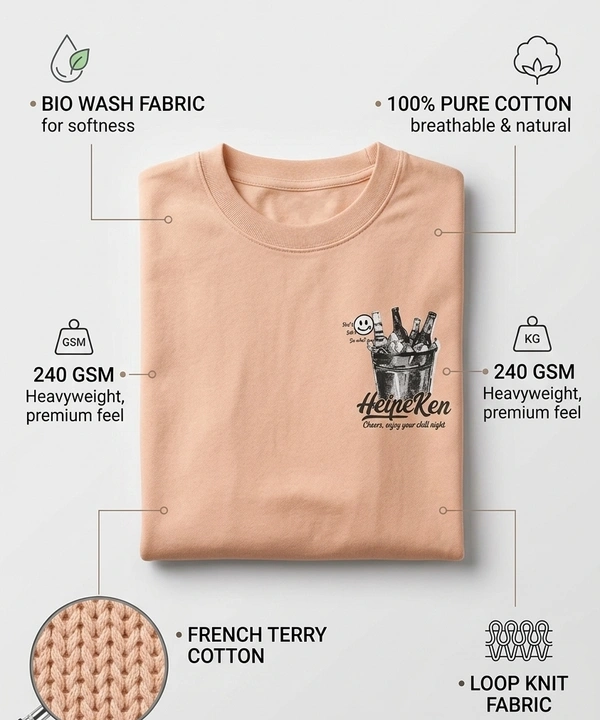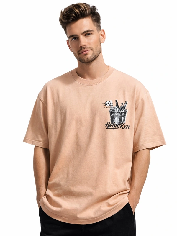 Storm Valor Beige Beer Bucket Graphic Oversized T-Shirt - 240 GSM 100% Cotton French Terry - Gold-Washed Premium Streetwear Tee.