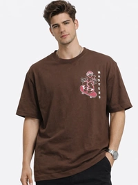Storm Valor Brown Skater Graphic Oversized T-Shirt - 240 GSM French Terry Cotton - Gold-Washed Premium Streetwear Loose Fit Tee.