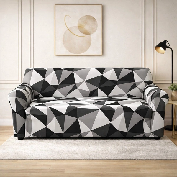 Storm Valor Grey & Navy Abstract 3 Seater Sofa Cover | Modern Polycotton Fabric | Premium Geometric Furniture Protector | Breathable & Easy Washable Sofa Wrap