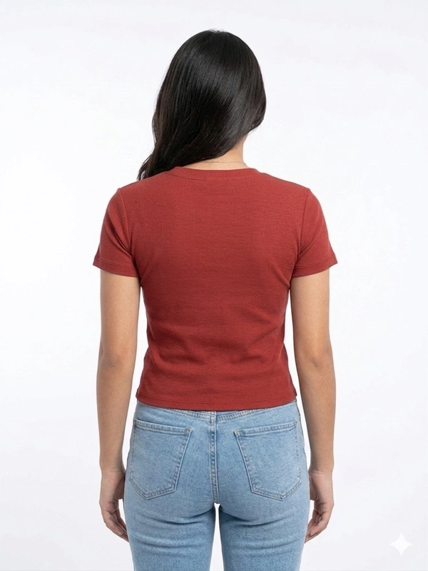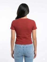 SEO Meta: Storm Valor Butterfly Top, Ribbed T-shirt for Women, 160 GSM Slim Fit Tee, Maroon & White Ribbed Wear.