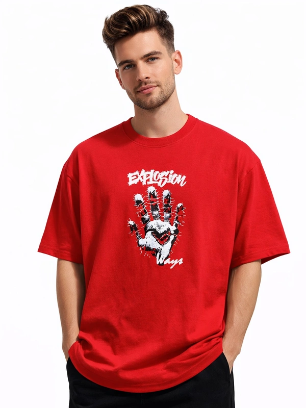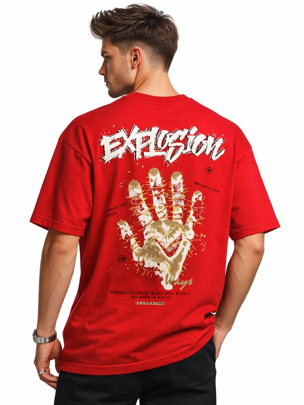 SEO Meta: Red Streetwear Tee, Explosion Graphic T-shirt, Storm Valor Red Oversized, 240 GSM Pure Cotton.