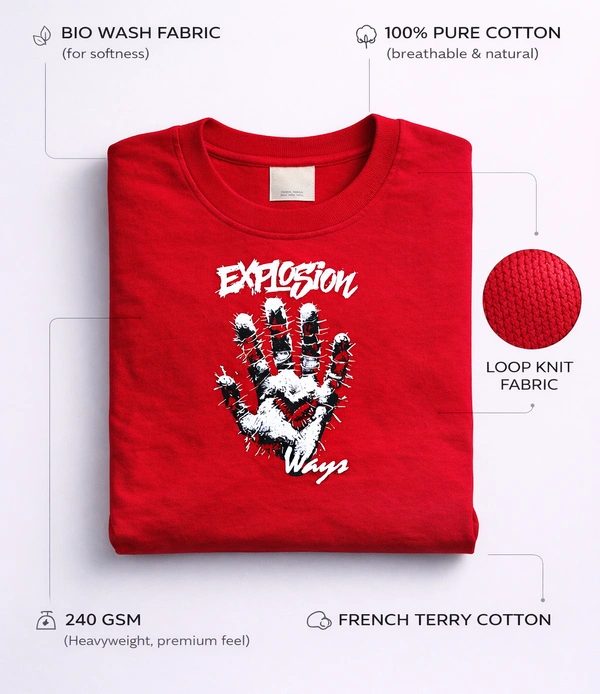 Storm Valor Red "Explosion" Oversized T-Shirt - 240 GSM Heavyweight French Terry - Bio-Washed 100% Pure Cotton Urban Graphic Tee.