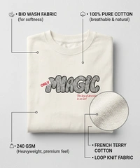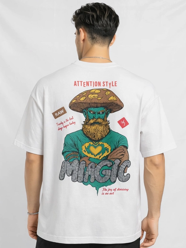 Art you can wear. This Pristine White oversized tee features the "Magic Attention Style" mushroom man graphic. It�s a piece of luxury streetwear that combines surreal art with top-tier fabric technology.