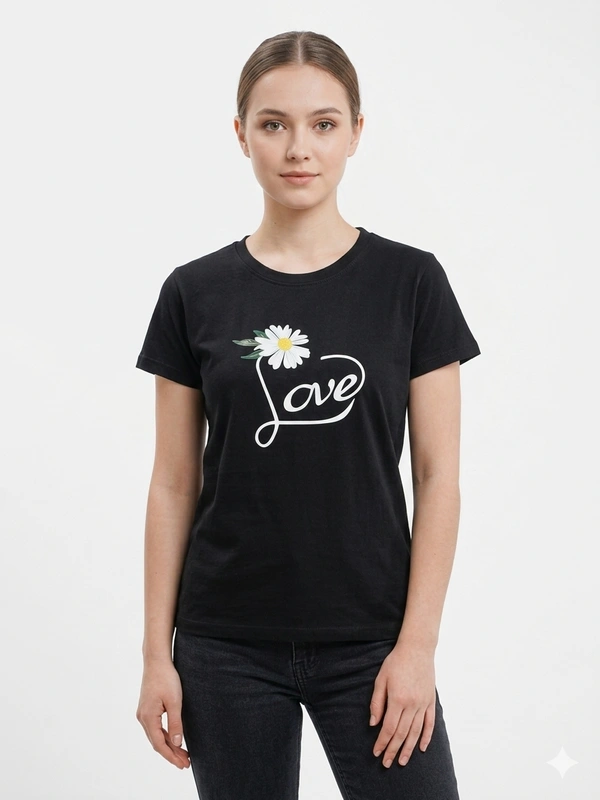 A classic that never fades. This deep black tee combines the timeless "Love" typography with a fresh daisy floral accent. It�s the ultimate versatile piece for every woman's wardrobe.